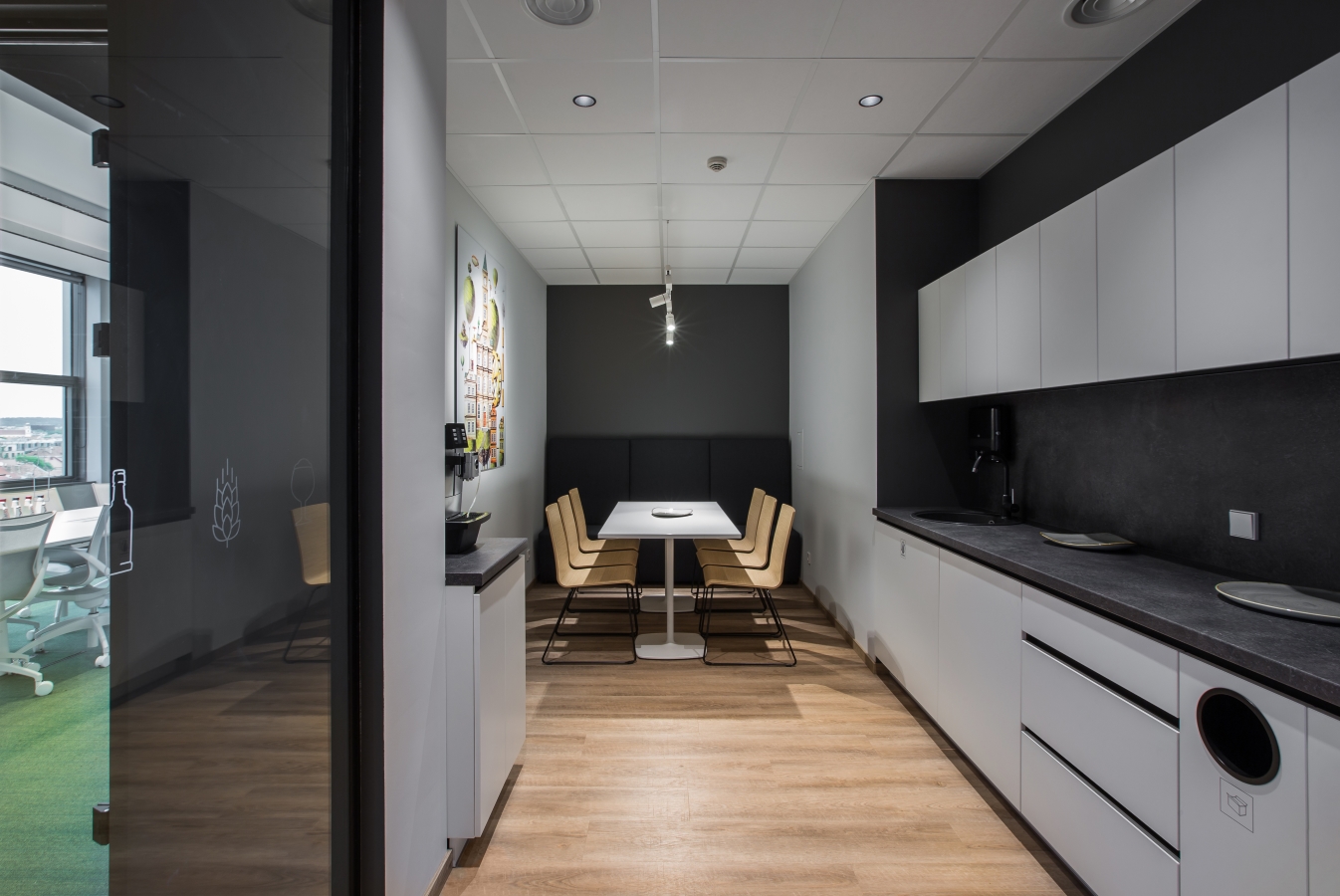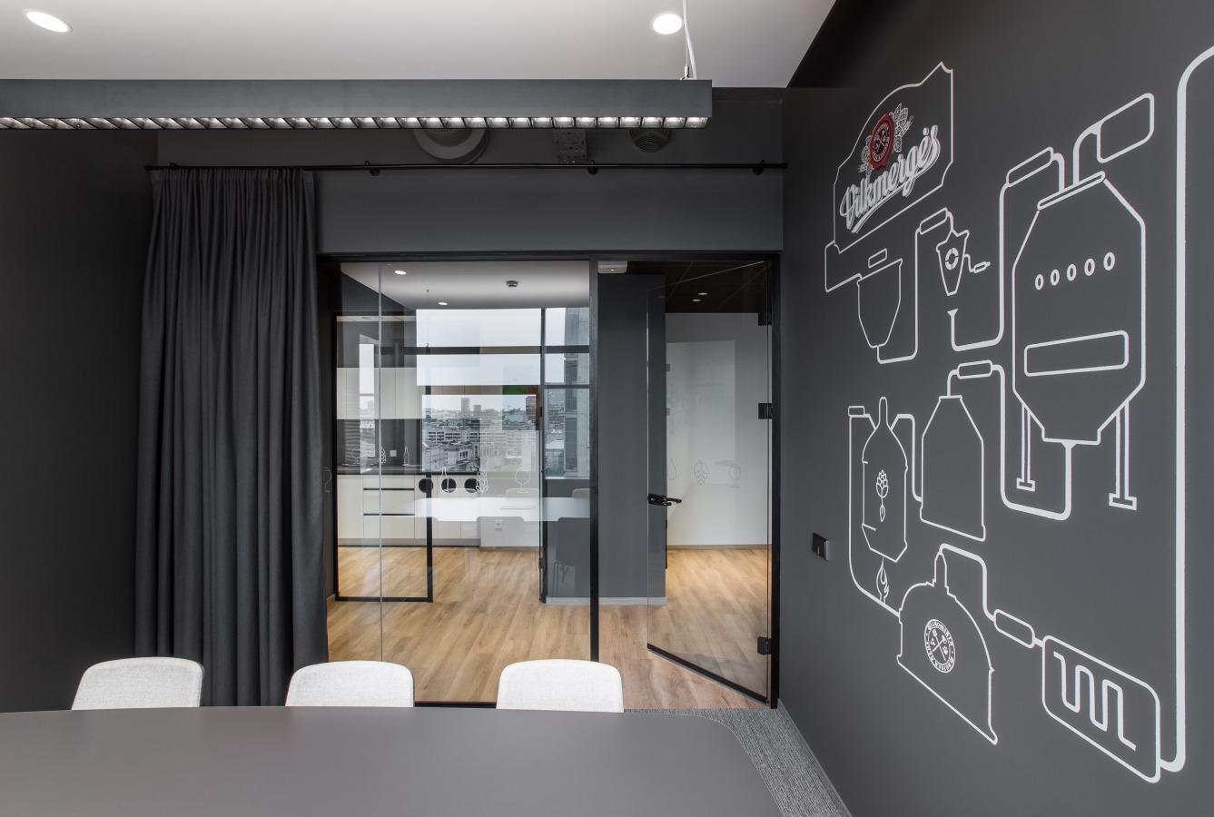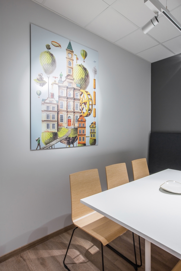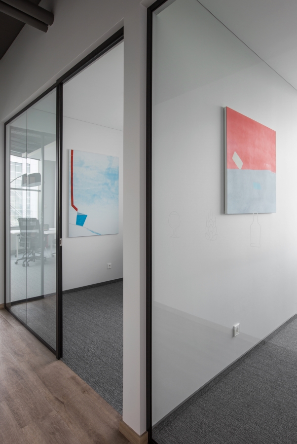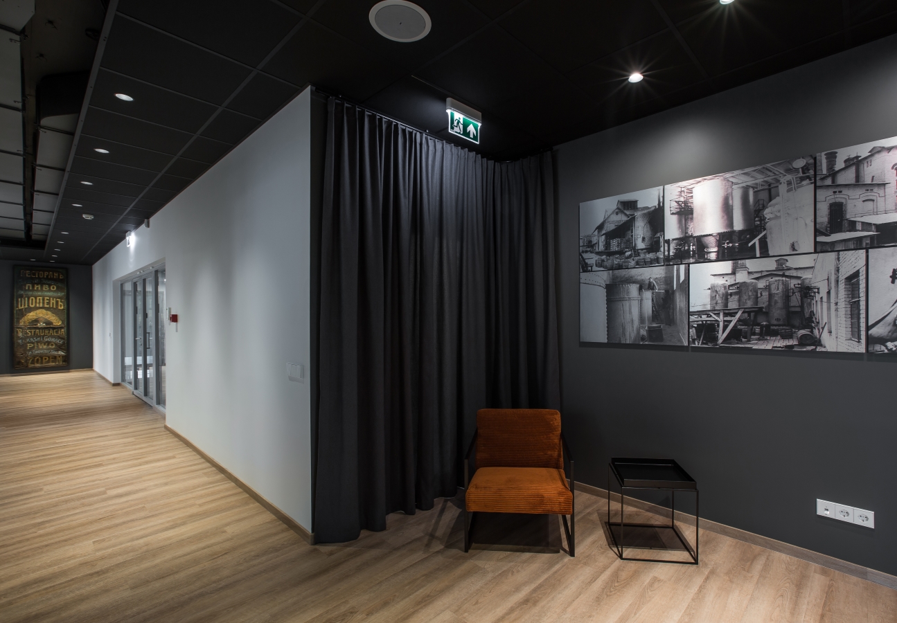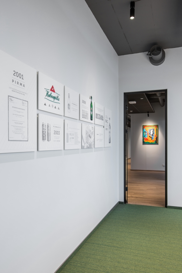 Labiausiai šis projektas mums išskirtinis puikiu komandiniu darbu kartu ir su grafinio dizaino kūrėjais, ir su atstovais iš užsakovo pusės. Tokiu būdu po ilgų diskusijų dėl erdvių dekoravimo, buvo prieitas sprendimas – ofisas kaip meno galerija. Su minimalistiniais įmonės branding‘o atspindžiais, istorinių reklaminių iškabų bei senų gamyklos nuotraukų įkomponavimu interjere, o su MO Muziejumi susitarta dėl kokybiškų Mo Muziejaus kolekcijos darbų reprodukcijų eksponavimo ofiso erdvėse. Ateityje ekspozicija galės būti keičiama ar papildoma, pagal ten dirbančių žmonių poreikius.