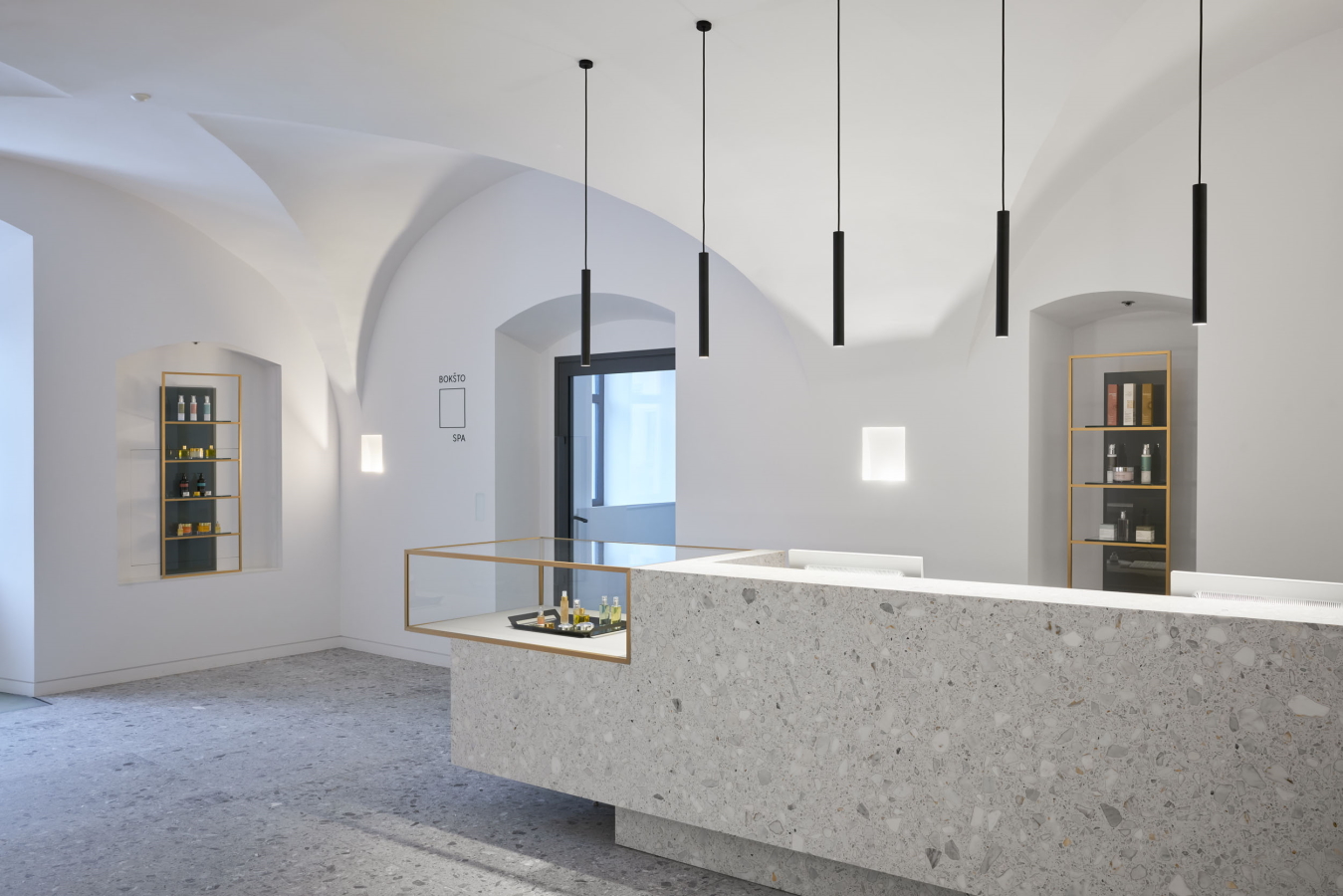 Komplekso rekonstrukcija pradėta 2008m, o 2019m aš prisijungiau SPA darbo projekto etape. Mano užduotis buvo pritaikyti SSA interjero dizaino koncepciją esamoje situacijoje. Detalizuojant brėžinius, buvo nemažas iššūkis, kaip išlaikyti SSA dizaino kryptį netaisyklingų formų ir ribotų dydžių autentiškuose rūsiuose. Reikėjo rasti techniškai įgyvendinamus sprendimus, atitinkančius ir užsakovo ypatingai aukštus estetikos reikalavimus, ir statybos techninius reglamentus, tuo pačiu – išsaugoti vertingų istorinių statinių autentiką.