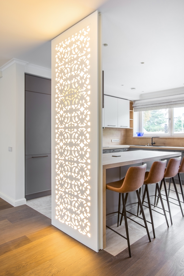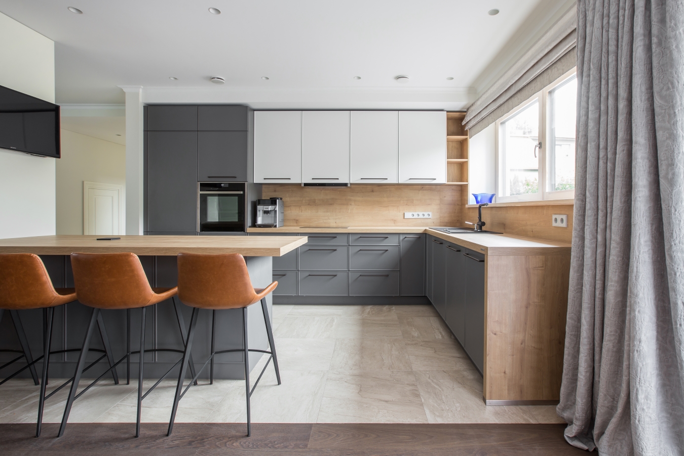 Remontuojamo namo interjeras kurtas pagal užsakovų pageidavimą turėti jaukius, komfortiškus ir praktiškus namus, nesivaikant madų, o pirmenybę teikiant kokybiškiems, laiko patikrintiems sprendimams. Interjeras neapkrautas detalėmis, aiškus ir monumentalus, su lengvumo suteikiančiomis lenktų formų linijomis. Tradiciškumas kaip vertybė atsispindi tiek natūralių apdailos medžiagų pasirinkime, tiek funkciniame planavime, pavyzdžiui, valgomajame naujai suformuota niša kredensui, šalia valgomojo, kaip tradiciškai būdinga XIXa interjerams, įrengtas svečio kambarys ir sandėliukas („spižarnė“). Koloritas pasirinktas žemiškų gamtos spalvų – šiltus medienos, marmuro ir odos atspalvius papildo šaltesni akmens spalvų tonai, kontrasto suteikia juodos detalės.