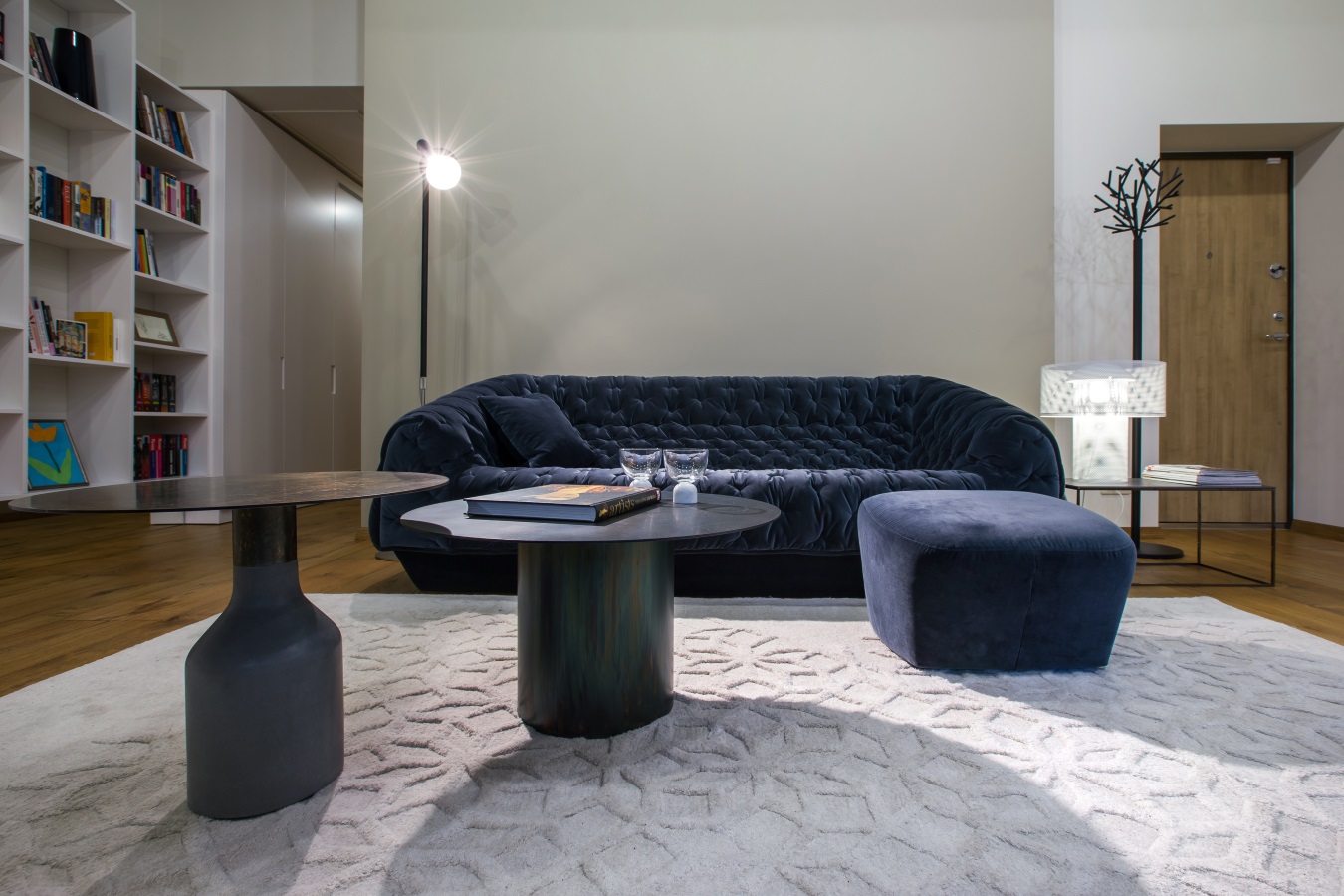 Vilniaus senamiesčio širdyje gyvenanti šeima pagerino savo gyvenimo kokybę praplėsdami esamą butą, tuo tikslu buvo įrengtos greta buto esančios neeksploatuojamos patalpos pastogėje. Buto ofiso viziją padiktavo esamo buto interjeras, užsakovų puoselėjamos vertybės ir poreikiai. Interjeras kurtas skulptūrinių formų ir tekstūrų pagrindu. Neutraliame fone – komponuojamas spalvotas piešinys, kuris sukuria jaukią atmosferą. Iš esamo buto į namų ofiso aplinką patenkame per „paslėptas” duris iš svetainės. Pagrindinė darbo erdvė suformuota, kad joje būtų patogu skaityti, dirbti su kompiuteriu. Dušo patalpa ir poilsio kambarys dekoruojami drugelių tematika.