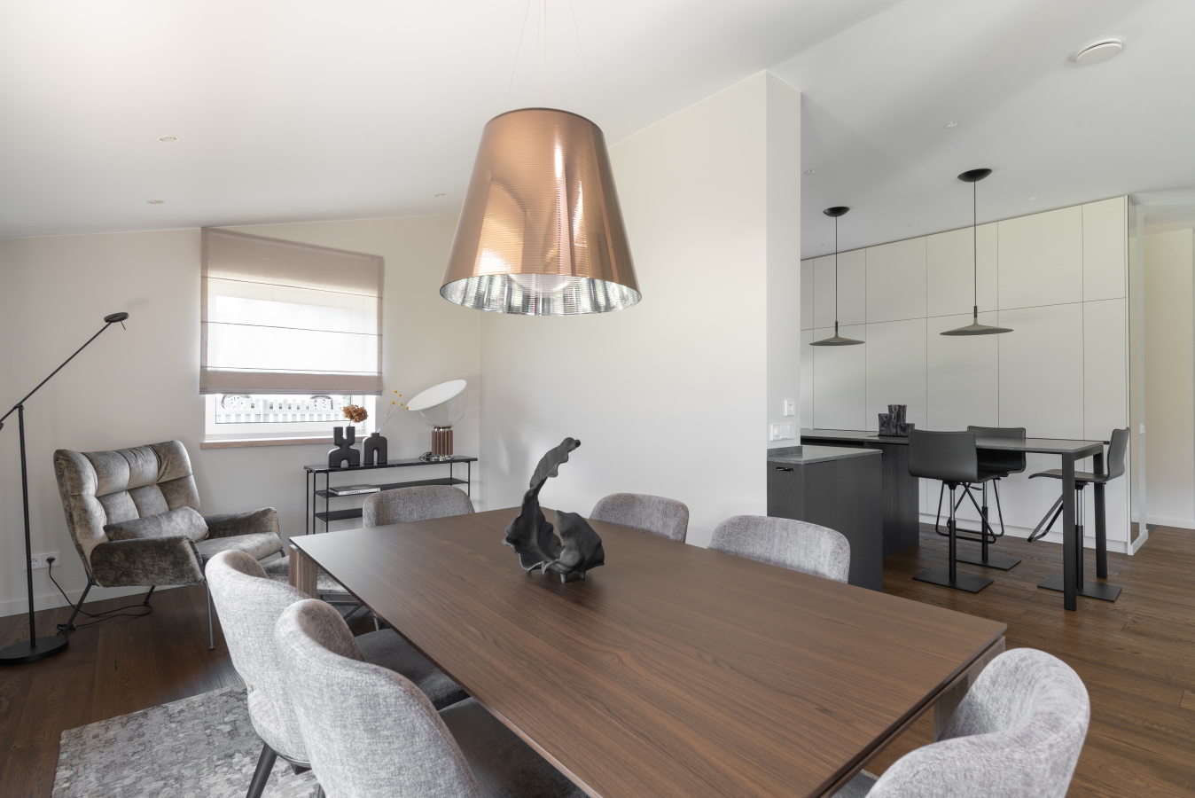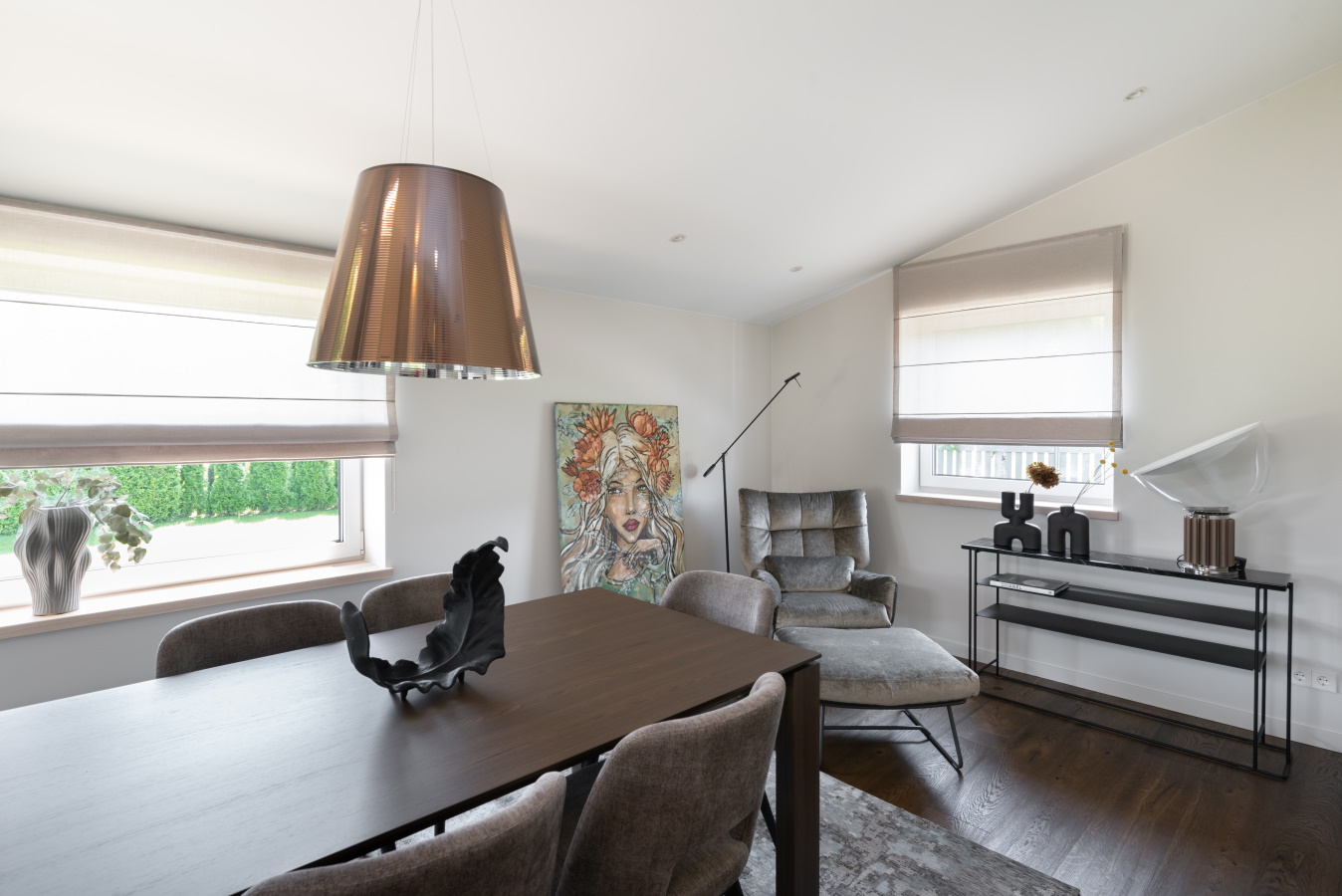 Antram gyvenimui prikelti namai, kuriuose naujai atvertos erdvės suteikė patalpoms šviesos ir laisvės pojūčio. Įgyvendinta idėja realizuoja išskirtinį šio interjero bruožą – subtilų ir skoningą skirtingų natūralių medžiagų derinį: tekstūrinė tamsi mediena, veidrodžiai, pilkas akmuo, juodas metalas, kaip atsvara pasirinktas šviesus pastelinių spalvų sienų koloritas. Visuma švelniai kuria žemiškas istorijas apie jaukumą ir funkcionalumą.